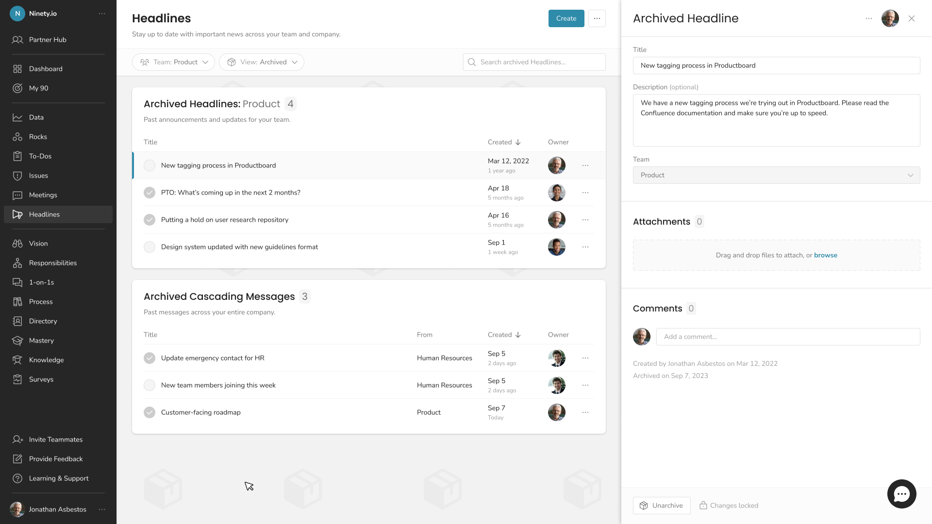 Recency and relevancy aside, a theme that transcended the entire Ninety experience was unnecessary divergence. Things that should have been very similar at their core were being treated like two or three completely different experiences. Understanding underlying user behavior and building consistent templates and patterns around the Ninety experience gave me the opportunity to consolidate a lot of features that had previously been completely misaligned – great news for the user. Anytime a seemingly new pattern mimics one the user has already encountered, with just enough divergence to make it unique, the new feature becomes infinitely more learnable and as a result, much more adoptable.