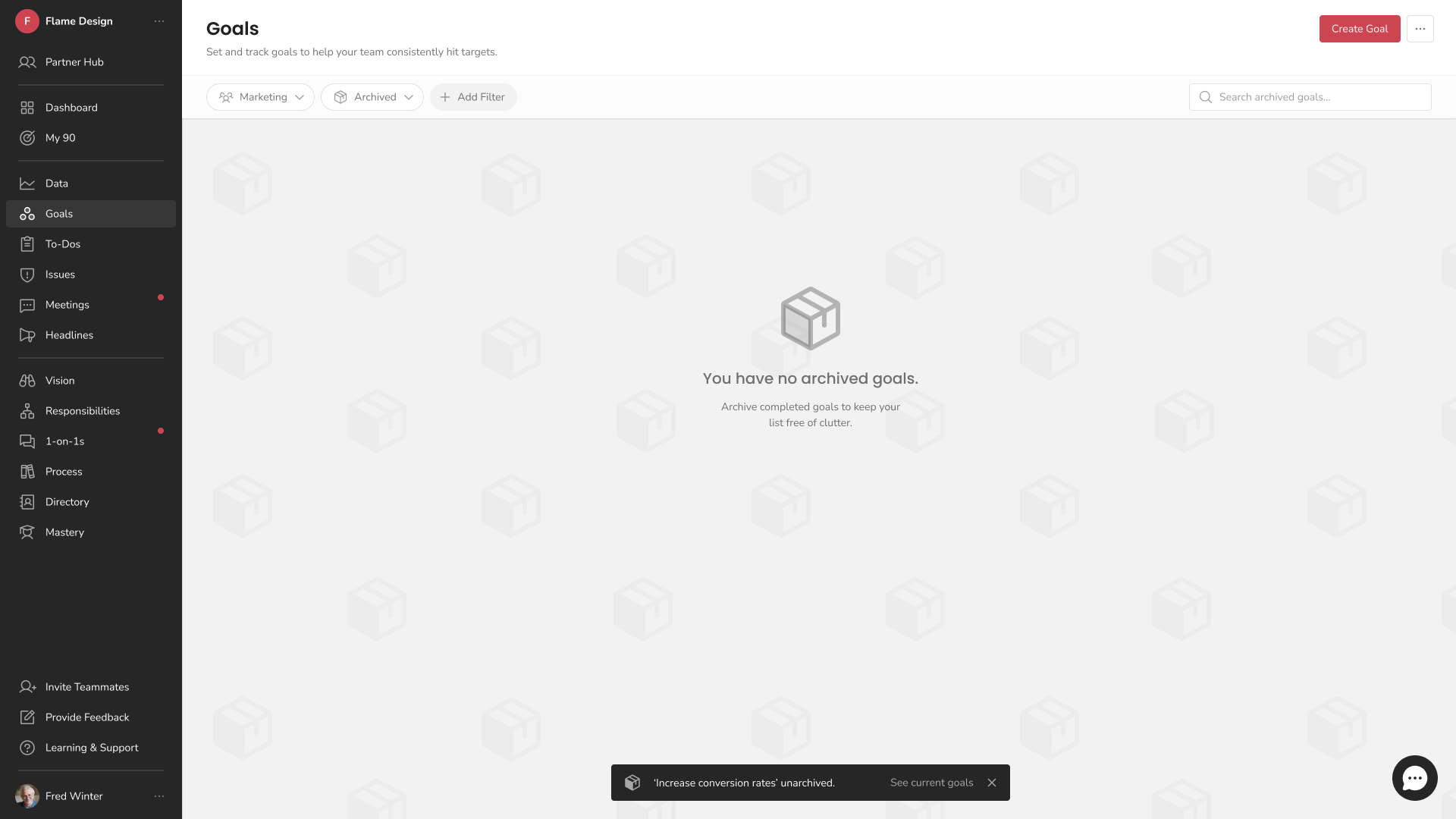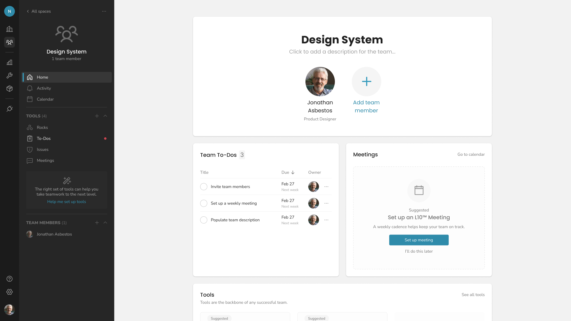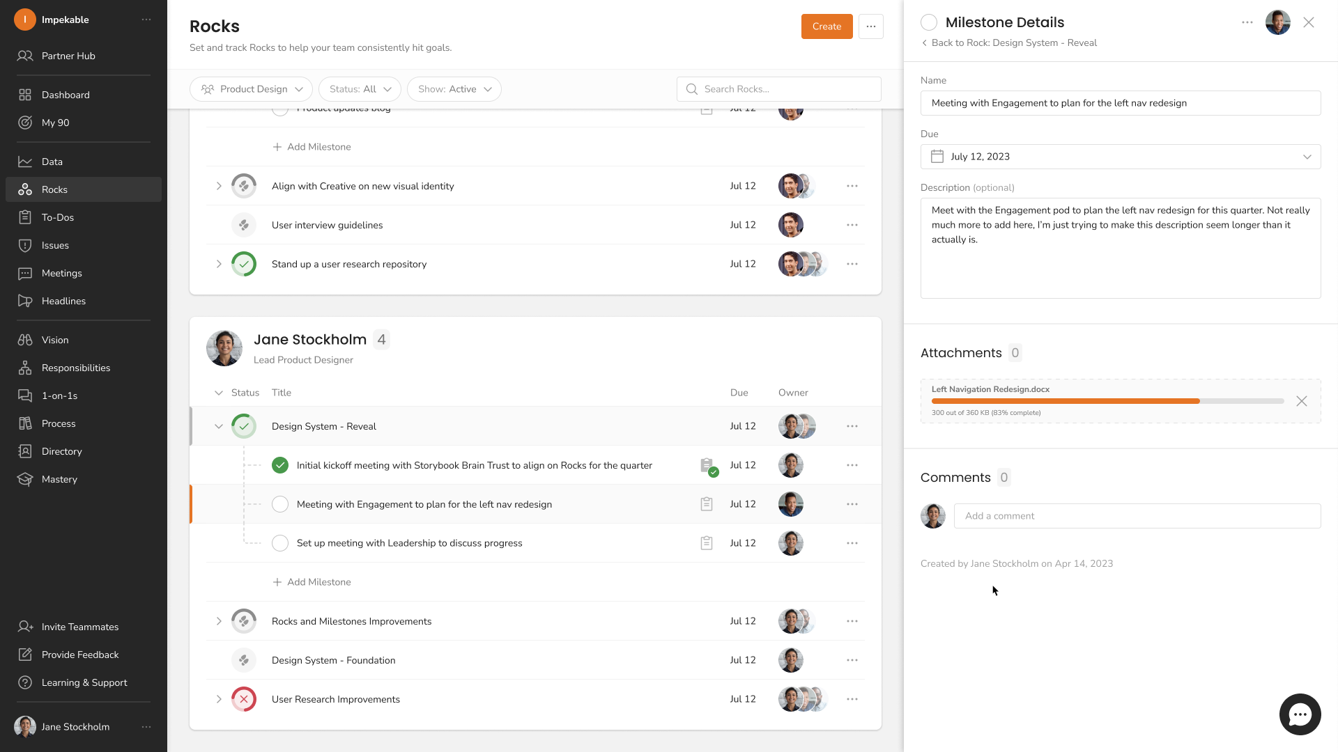 During my first year with Ninety, I inherited a legacy out-of-the-box Material design and worked with a pre-contracted outside agency to build up Ninety's first UI kit. With every page I redesigned, and every new feature I built, I gained a better understanding of Ninety's users: how they interact with the app, what's working, what's not working. In the summer of 2022, things changed – Ninety contracted a firm to undergo a holistic organizational rebrand. We were moving away from our overt affiliation with EOS™, and forging ahead on our own. On the product design side, I took it as an opportunity to start fresh: build something from the ground up that aligned to both Ninety's new identity and the needs of our ICP.