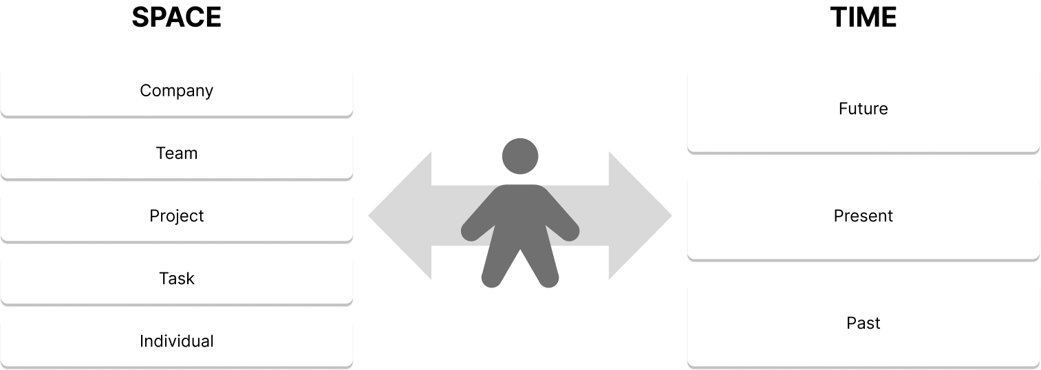 Once we solve the time issue, we need to think about the space issue. If an app caters to teams within a company, does the app's navigation align with users' mental models of their teams? Does observed user behavior align to the current info hierarchy, or is the latter a point of friction? Could we come up with a better way?